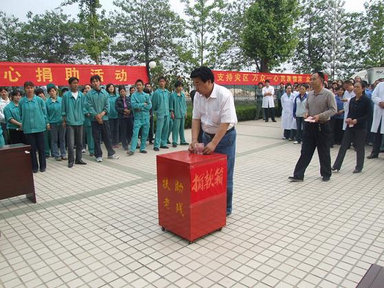 2008年5月15日,藥都集團全體員工在藥都制藥辦公樓廣場舉行救助災區(qū)捐贈活動。安國市委書記劉穎、市長呂竹青、副市長張彥安、安國市工會主席畢國群以及民政局、藥業(yè)發(fā)展局、食品藥品監(jiān)督管理局領(lǐng)導參加了捐贈儀式。捐贈儀式分為兩項內(nèi)容,一是由藥都集團向災區(qū)人民捐贈救災藥品,二是由藥都集團全體員工進行捐款獻愛心活動。