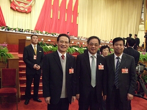 李曉恩代表與記者在第十一屆全國人大二次會議上合影留念