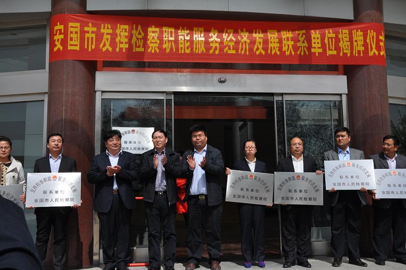 2015年4月17日上午,保定市檢察院、安國市委、市政府、檢察院在我公司舉行“安國市發(fā)揮檢察職能,服務(wù)經(jīng)濟(jì)發(fā)展聯(lián)系單位揭牌儀式”,我公司在內(nèi)的8家企業(yè)被安國市檢察院列為“安國市發(fā)揮檢察職能,服務(wù)經(jīng)濟(jì)發(fā)展聯(lián)系單位”。